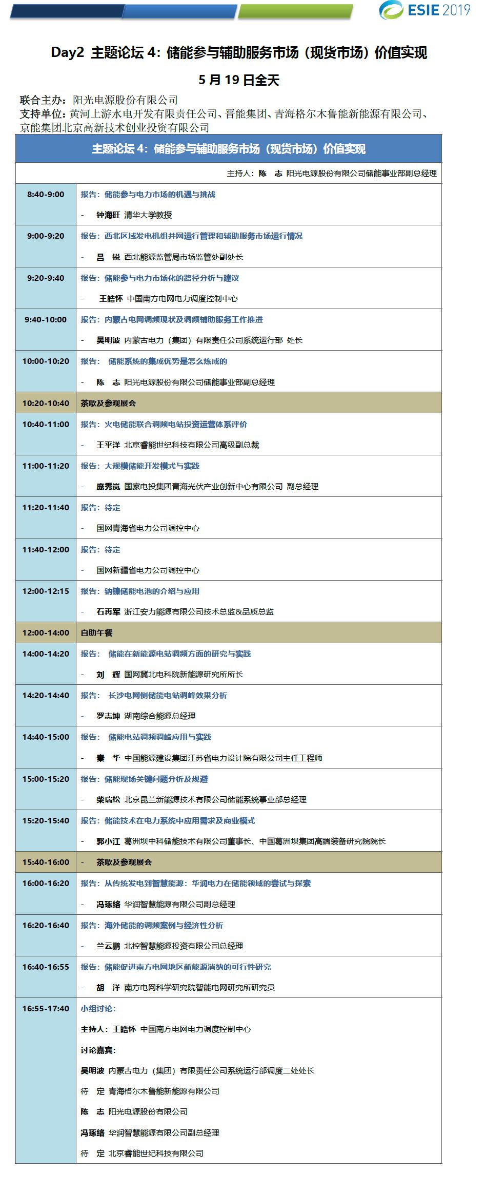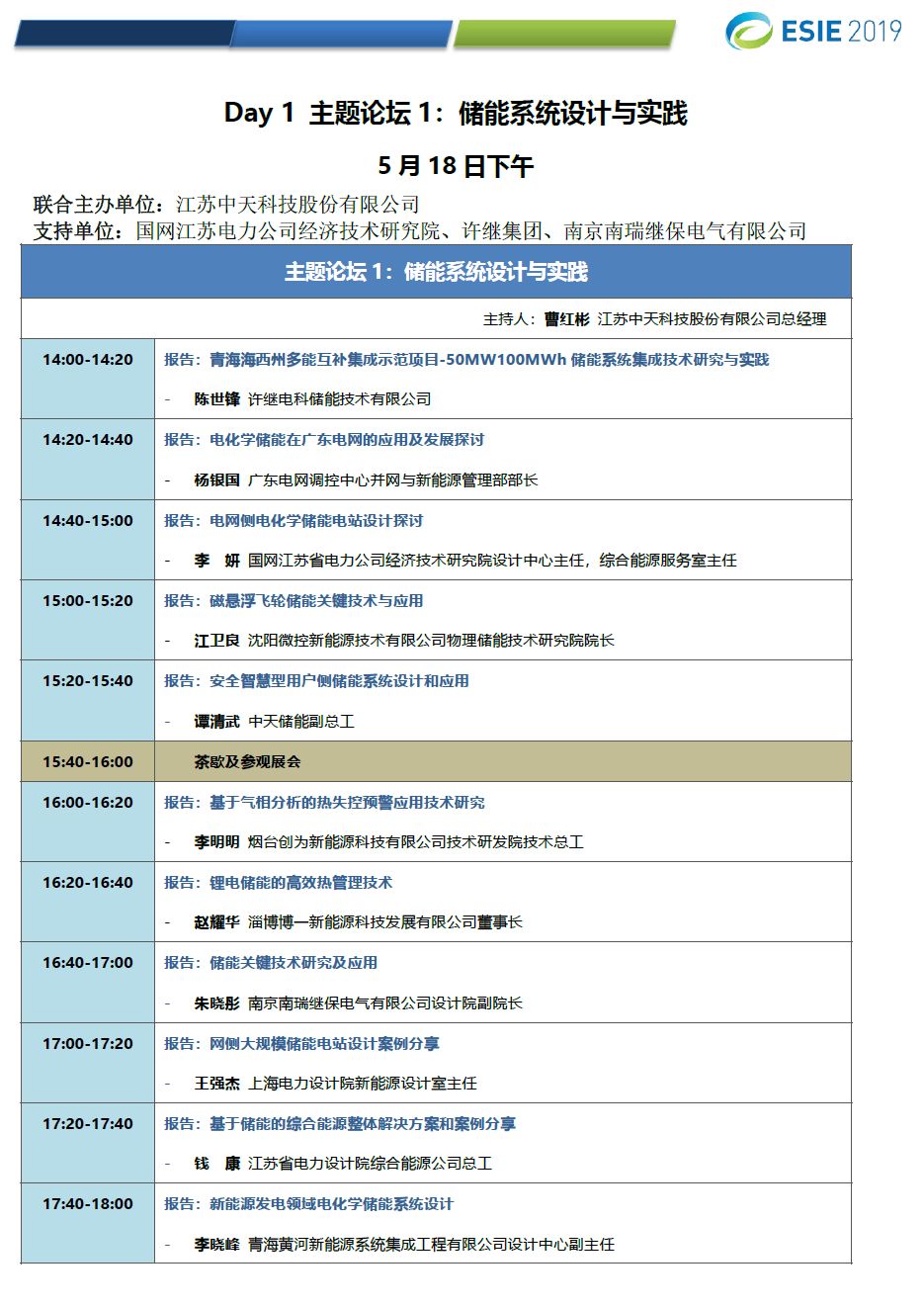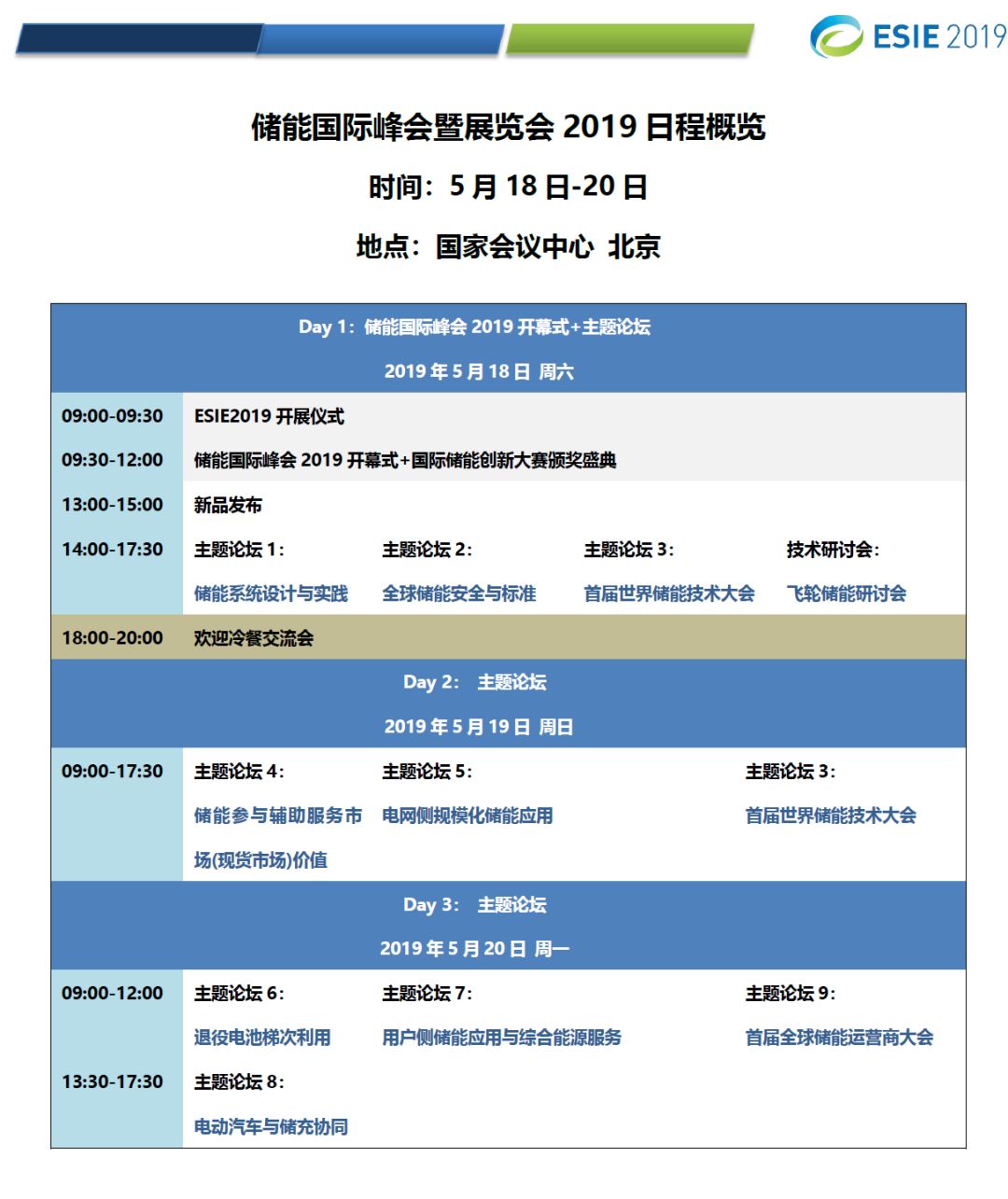 由儲能聯盟主辦的第八屆“儲能國際峰會暨展覽會2019(ESIE2019)”將于5月18-20日在國家會議中心(北京)盛大啟幕,主題聚焦“技術應用雙創新,規模儲能新起點”,將通過組織主題演講、展覽展示、創新大賽、專題研討、項目考察、新品發布、技術交流等多種活動,多維度精準對接全球儲能市場與應用,助力中國儲能企業與國際接軌,為儲能企業搭建與政策制定者、規劃者、電網管理者、電力公司、能源服務商等交流互動平臺。
