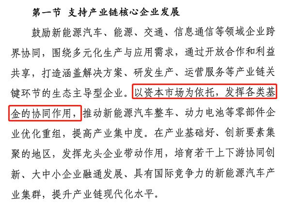 值得注意的是,本月初,國(guó)家工業(yè)和信息化部在發(fā)布的《新能源汽車產(chǎn)業(yè)發(fā)展規(guī)劃(2021-2035年)》(征求意見(jiàn)稿)中提出,以資本市場(chǎng)為依托,發(fā)揮各類基金的協(xié)同作用,推動(dòng)新能源汽車整車、動(dòng)力電池等零部件企業(yè)優(yōu)化重組,提高產(chǎn)業(yè)集中度。