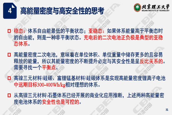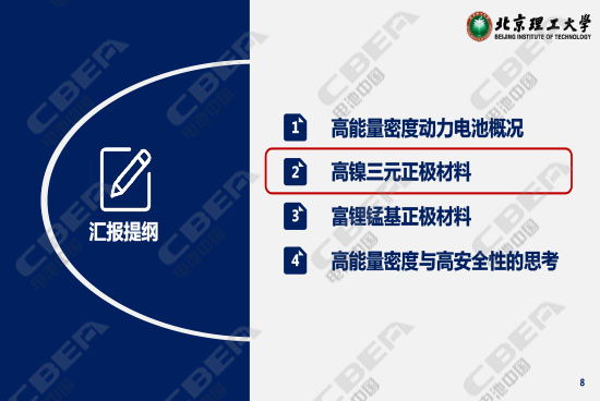 北京理工大學教授蘇岳鋒就“高能量密度動力電池關鍵材料與技術(shù)”作主旨演講,分享了高鎳三元正極材料和富鋰錳基正極材料、以及如何在保證安全性的前提下提升電池能量密度。