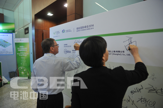 2014年6月23日,由國家能源局指導,中關村儲能產業技術聯盟(CNESA)與杜塞爾多夫展覽(上海)有限公司共同主辦的儲能行業第三屆年度高峰論壇——“儲能國際峰會2014”在北京國家會議中心召開,圖為嘉賓簽到。