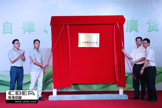 7月13日下午,廣東省電動車商會成立大會暨第一次會員擴大會議在廣州白云國際會議中心隆重舉行。圖為揭牌儀式。