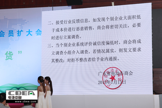 7月13日下午,廣東省電動車商會成立大會暨第一次會員擴大會議在廣州白云國際會議中心隆重舉行。圖為商會發布行業自律性文件。