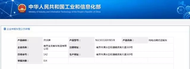 近日,中華人民共和國工業(yè)和信息化部發(fā)布了2017年第298批《道路機動車輛生產(chǎn)企業(yè)及產(chǎn)品公告》,配套了猛獅三元鋰離子電池的南京金龍“開沃牌”純電動廂式運輸車NJL5031XXYBEV8和NJL5032XXYBEV8成功入選。