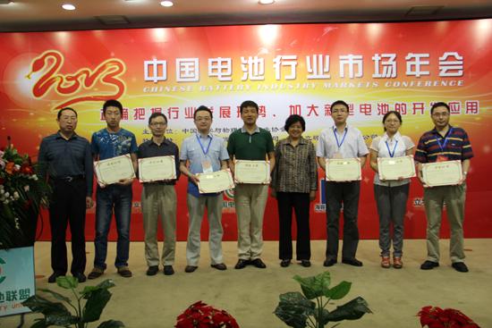 為了幫助中國電池企業(yè)客觀地分析2012年電池行業(yè)的運行情況,正確把握2013年行業(yè)發(fā)展趨勢,加大新型電池的開發(fā)應用,2013年5月16-18日,中國化學與物理電源行業(yè)協(xié)會北京召開了“2013年中國電池行業(yè)市場年會”。圖為頒獎環(huán)節(jié)。
