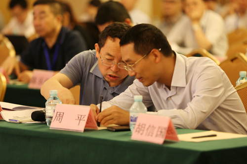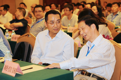 2014年5月29日,電池行業(yè)垂直媒體平臺——《電池中國》網(wǎng)站上線新聞發(fā)布會在京隆重舉行。圖為雙登集團(tuán)常務(wù)副總裁周平與哈工大教授胡信國交談。