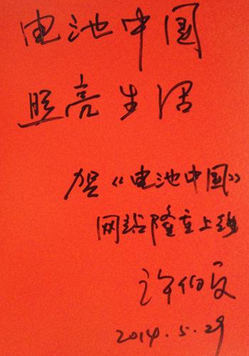 解放軍第二炮兵《火箭兵》報社總編室主任許伯樂先生為電池中國網站上線題寫寄語