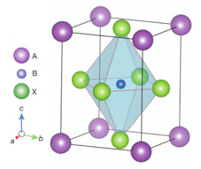 鈣鈦礦的結(jié)構(gòu)是ABX3的形式。這種結(jié)構(gòu)在每個(gè)角共享一個(gè)BX6正八面體,其中B是金屬陽離子(Sn2+或Pb2+),X是一價(jià)陰離子(Cl-,Br-或I-)。鈣鈦礦中的陽離子A被用來抵消電荷使材料達(dá)到電中性,它可以是半徑較大鹼金屬離子等,甚至可以是一個(gè)分子。