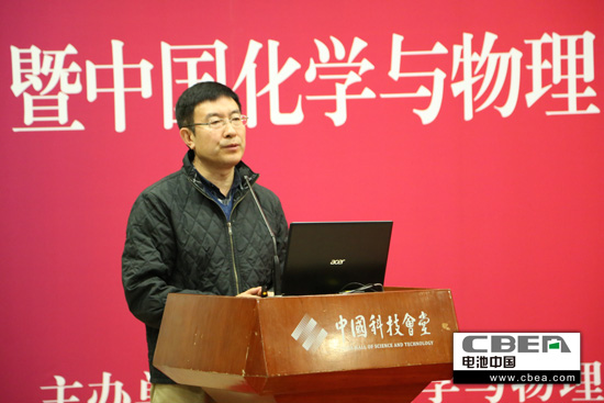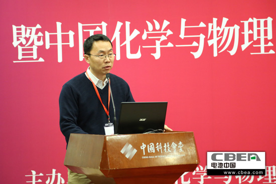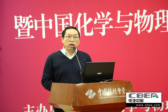 圖為中國科學院物理所國家實驗室副主任、研究院李泓做主題演講