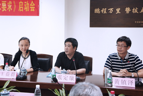 廣東省質量技術監督局標準化處處長張定康(右二)、廣東產品質量監督檢驗研究院輕紡部副部長黃鎮澤(右一)出席會議
