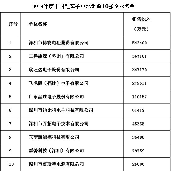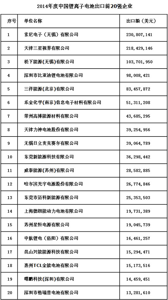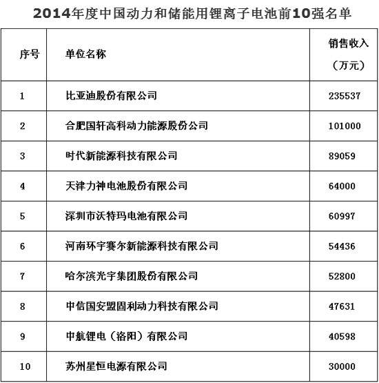 “2014年度中國鋰電企業(yè)20強”名單公布