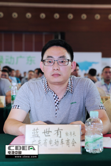 圖為廣東省電動車商會秘書長藍世有接受本網專訪