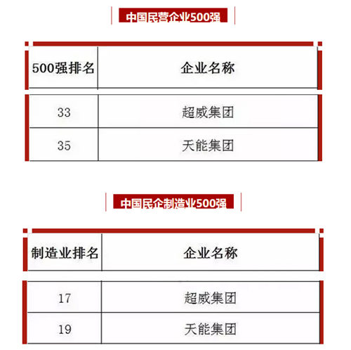 繼以第198名和第211名的成績上榜由中國企業(yè)聯(lián)合會、中國企業(yè)家協(xié)會發(fā)布的“2015中國企業(yè)500強(qiáng)榜單”后,浙江民企超威集團(tuán)和天能集團(tuán)又分別以第33名和第35名的優(yōu)異成績榮登“2015中國民營企業(yè)500強(qiáng)”榜單。同時,在“中國民企制造業(yè)500強(qiáng)”中,超威集團(tuán)、天能集團(tuán)分別排名17、19,成為民企制造業(yè)中電池行業(yè)的杰出代表。