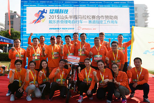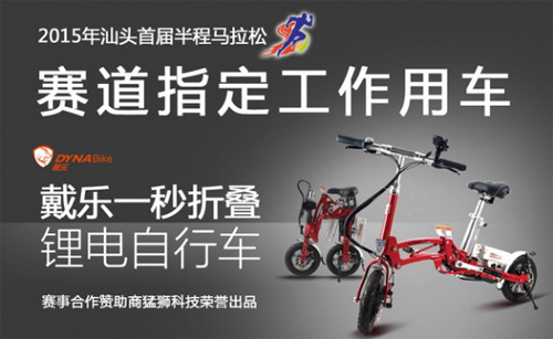 作為“2015年汕頭半程馬拉松賽”賽事合作贊助商,猛獅科技旗下的戴樂(lè)一秒折疊鋰電自行車(chē)成為“賽道指定工作用車(chē)”,而這款車(chē)也是猛獅科技踐行“綠色健康生活主張”的一款時(shí)尚產(chǎn)品。