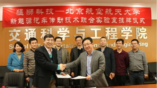 3月9日,廣東猛獅新能源科技股份有限公司(以下簡稱猛獅科技)與同濟汽研共同出資設立上海太鼎汽車工程技術有限公司。3月11日,猛獅科技與北京航空航天大學交通科學與工程學院(以下簡稱北航交通學院)聯合成立的“新能源汽車傳動技術聯合實驗室”(簡稱“聯合實驗室”)在北京航空航天大學工程訓練中心舉行掛牌儀式。這兩大舉措的推進,標志著猛獅科技在新能源汽車領域的布局再次邁上一個新的臺階。