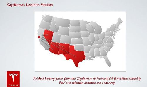 今年2月,特斯拉表示,將建立全球最大的鋰離子電池廠,并在美國(guó)亞利桑那州、內(nèi)達(dá)華州、新墨西哥州及德克薩斯州進(jìn)行選址評(píng)估。特斯拉在3月份已經(jīng)完成23億美元(約合人民幣144億元)的融資,為籌建電池廠提供了資金支持。不過(guò),馬斯克拒絕透露電池廠選址細(xì)節(jié)。