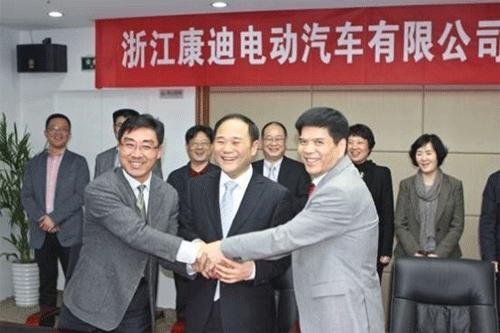 浙江康迪車業(yè)有限公司和吉利汽車旗下子公司上海華普國潤汽車有限公司于2013年3月22日下午在中國浙江省杭州市西湖區(qū)正式簽署合資協(xié)議,成立浙江康迪電動汽車有限公司(以下簡稱合資公司)。合資公司注冊資本為人民幣10億元,將由上海華普國潤及康迪車業(yè)分別擁有50%權(quán)益,以從事投資、研發(fā)、生產(chǎn)、市場推廣及銷售電動汽車業(yè)務(wù)。