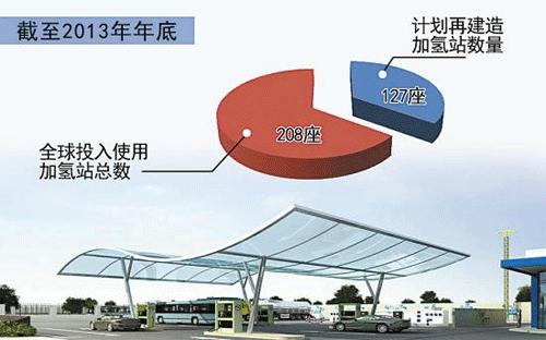 配套條件建設也已經起步。據一個到2013年年底的數據,全球至少已經有208座加氫站投入使用,在建和列入計劃待建的還有127座。另一個是美國加利福尼亞州的數據,在2015年底之前就要設置68座加氫站,到2017年增加到100座以上。中國雖然相對較少,但在北京和上海也有了兩座。