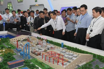 董事長(zhǎng)張?zhí)烊蜗騾⒂^嘉賓介紹循環(huán)產(chǎn)業(yè)園