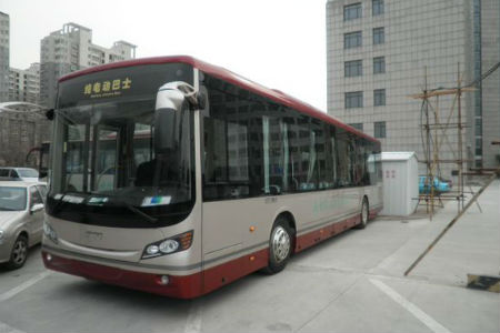 在武清汽車產業(yè)園天津比亞迪汽車有限公司廠區(qū)內,公交車司機崔志海師傅正在嘗試著操作剛剛下線的“金馬”牌純電動公交車。即使在時速40公里的狀態(tài)下,坐在十多米寬,近三米長的車廂里,也聽不到一點機器運行發(fā)出的噪音。和幾個月前投入使用的無障礙公交車一樣,新能源公交車車身具有向右側傾斜的側跪功能,后門處還設計了翻轉坡道及輪椅區(qū)。試車結束,崔師傅對新車贊不絕口,“這個是電動的,節(jié)能減排。也不用掛檔了,還挺輕松。一鍵啟動,無障礙上車啊,人性化,速度也行,滿載爬坡跑40多,平時能跑60到70吧……”。