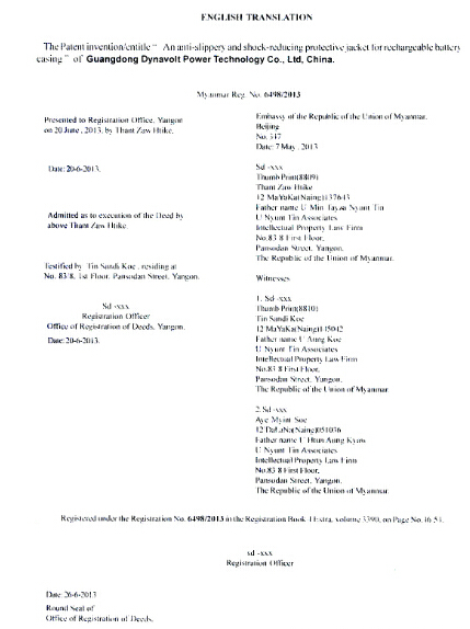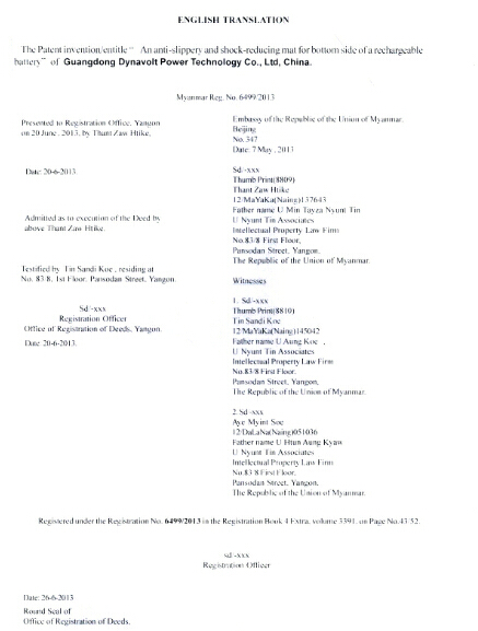 1. 一種蓄電池底部防滑減震墊 (An anti-slippery and shock-reducing mat for bottom side of a rechargeable battery ),注冊(cè)號(hào):6499/2013。這種技術(shù)能很好地保護(hù)蓄電池,降低了意外發(fā)生的風(fēng)險(xiǎn),使其在使用過程中的安全性得到極大的提升。
