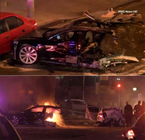 4日,特斯拉Model S車型在洛杉磯發生罕見事故,高速行駛的Model S撞上燈柱后,完全解體成兩半,隨后電池起火燒毀車體。