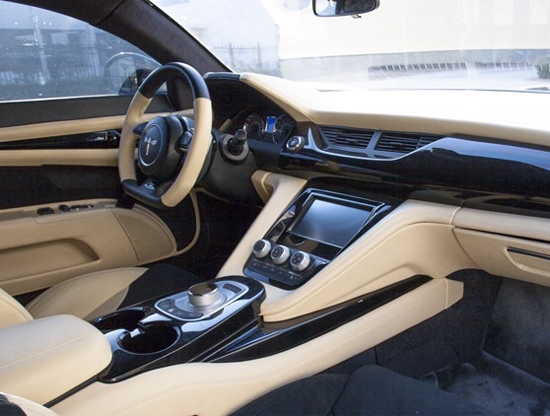 在內飾方面,“前途”大面積的真皮材質更像是傳統跑車,配色設施也同樣流露奢華格調。旋鈕換擋再次讓人聯想起捷豹的跑車,據稱觸屏顯示器在量產時也將進化,大小將接近測試車觸屏的兩倍,這樣的設計也讓這款“前途”看上去科技感十足!