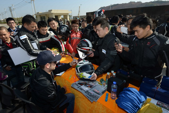 桑德羅為潮汕摩托車發燒友簽名