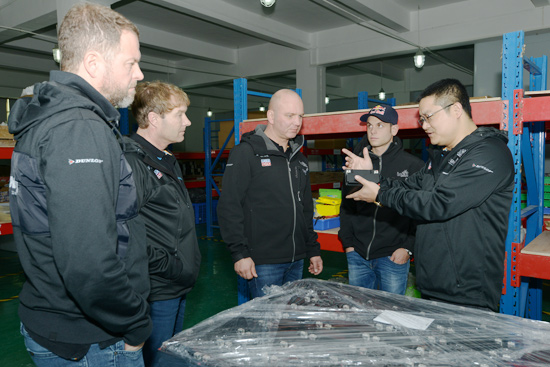 猛獅科技董事長(zhǎng)陳樂伍(右一)為桑德羅一行進(jìn)行技術(shù)講解