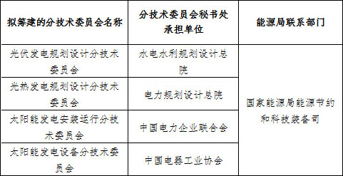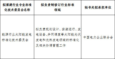 能源行業(yè)太陽能發(fā)電標準化技術(shù)委員會擬籌建方案