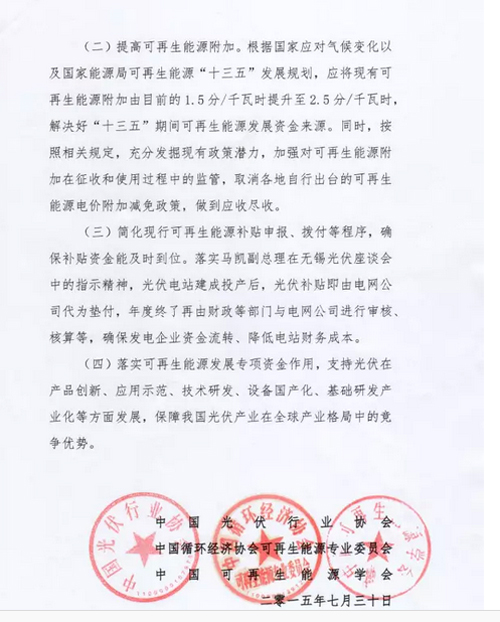 三組織提交促進光伏行業發展政策文件