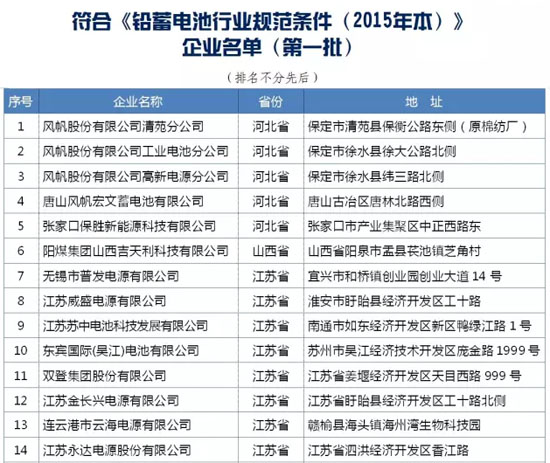 附件:符合《鉛蓄電池行業(yè)規(guī)范條件(2015年本)》企業(yè)名單(第一批)
