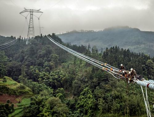 溪洛渡左岸—浙江金華±800千伏特高壓直流工程山區(qū)架線施工 李季攝