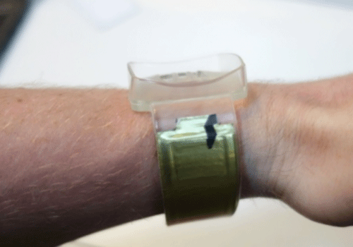 據輝能科技介紹,除了能有效充當Pebble智能手表的電池外,紙面上的參數表明,它還至少能將電池存儲容量翻一番。更令人叫絕的是,輝能科技的超薄柔性鋰電池還能變形成為腕帶。