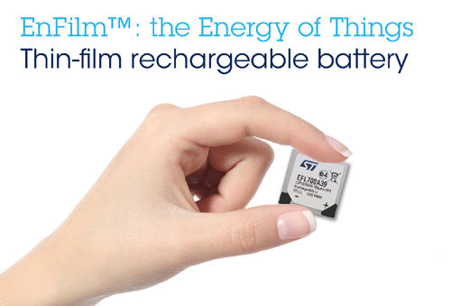 意法半導(dǎo)體(STMicroelectronics,簡稱ST)開始限量生產(chǎn)先進(jìn)的厚度不足0.25mm的EnFilm充電電池。這種薄如紙的電池讓設(shè)計(jì)人員擺脫了標(biāo)準(zhǔn)電池尺寸的限制,是下一代個人技術(shù)和物聯(lián)網(wǎng)(IoT)應(yīng)用最理想的電源解決方案。