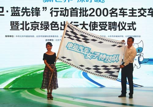 7月13日,北汽新能源公司在北京采育工廠舉辦儀式,向衛藍先鋒行動首批電動車主交付車輛。自6月5日北汽新能源啟動了衛藍先鋒行動計劃以來,一個月內已誕生200名E150EV純電動汽車車主,訂單客戶更是超過800名。交車儀式舉辦當天,北汽新能源聘請潘曉婷、顧俊、高敏、楊凌等世界冠軍擔任“北京綠色出行大使”,并宣布成立以潘曉婷為隊長的國內首支純電動汽車女子特技表演隊。