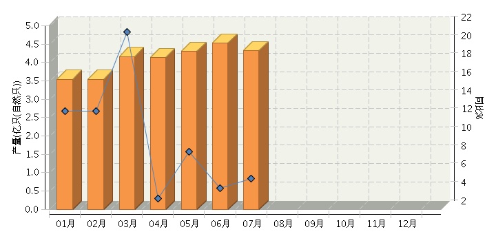 根據(jù)國(guó)家統(tǒng)計(jì)局公布數(shù)據(jù),全國(guó)鋰離子電池行業(yè)累計(jì)完成產(chǎn)量28.73億只(自然只),同比增長(zhǎng)8.33%。其中:7月份完成產(chǎn)量4.32億只(自然只),同比增長(zhǎng)5.32%。2014年全國(guó)鋰離子電池行業(yè)月度產(chǎn)量及同比如上圖所示。