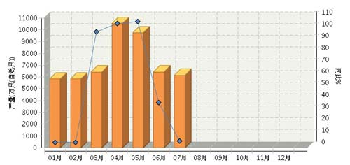 根據國家統計局公布數據,全國堿性蓄電池行業累計完成產量42,369.60萬只(自然只),同比增長20.60%。其中:7月份完成產量6142.64萬只(自然只),同比增長5.52%。2014年全國堿性蓄電池行業月度產量及同比如下圖所示。