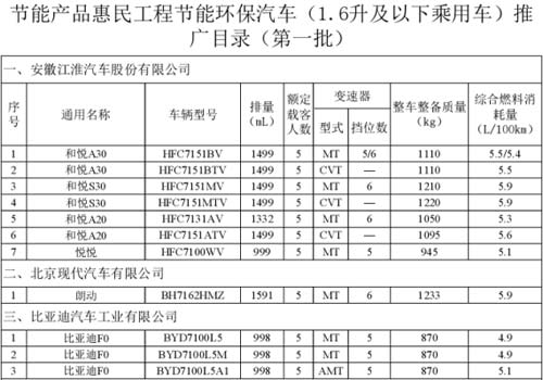 9月11日,國家發(fā)改委、工信部和財(cái)政部聯(lián)合發(fā)布新一輪關(guān)于開展1.6升及以下節(jié)能環(huán)保汽車推廣工作的通知,并發(fā)布“節(jié)能產(chǎn)品惠民工程節(jié)能環(huán)保汽車(1.6升及以下乘用車)推廣目錄(第一批)公告。比亞迪、上海大眾、一汽大眾、北京現(xiàn)代、長安馬自達(dá)等28家企業(yè)入圍新一輪推廣目錄。