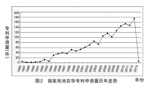 據(jù)國家知識產(chǎn)權(quán)局統(tǒng)計,在鎳氫電池領(lǐng)域,從 1985 年至 2013 年期間總共有1706 件中國專利申請(以實際申請日為準)。其中,國內(nèi)申請人提交的專利申請總量為 1284 件,占總申請量的 75%,這表明國內(nèi)發(fā)明人對鎳氫電池領(lǐng)域的專利申請重視程度很高。但是國內(nèi)申請人對外提交的專利申請不多,這顯示國內(nèi)申請人在鎳氫電池領(lǐng)域的專利布局仍以國內(nèi)申請為主。此外,國外申請人在華提交的專利申請總量為 422 件,其中,日本和美國是國外來華提交專利申請量排名前兩位的國家,分別為 314 件和 43 件。