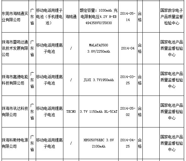 國家質(zhì)檢總局17日公布的2014年第2季度移動電話用鋰離子電池產(chǎn)品質(zhì)量國家監(jiān)督抽查結(jié)果顯示,不合格產(chǎn)品檢出率為10.7%,不合格產(chǎn)品檢出率同比上次抽查高出了2.1個百分點(diǎn)。