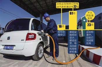 目前正在制修訂的電動(dòng)汽車標(biāo)準(zhǔn)還有77項(xiàng),其中現(xiàn)有標(biāo)準(zhǔn)修訂16項(xiàng),基礎(chǔ)設(shè)施規(guī)劃設(shè)計(jì)、建設(shè)運(yùn)營、電池回收利用等新標(biāo)準(zhǔn)制定61項(xiàng)。這些標(biāo)準(zhǔn)中,目前已完成報(bào)批稿23項(xiàng),不久將批準(zhǔn)發(fā)布。