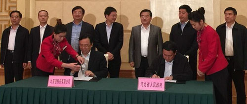 承德市長趙風樓與比亞迪股份有限公司董事長、總裁王傳福代表雙方簽署投資協(xié)議書。