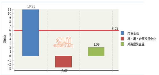 3、內(nèi)資企業(yè)主營業(yè)務(wù)收入增長較快
