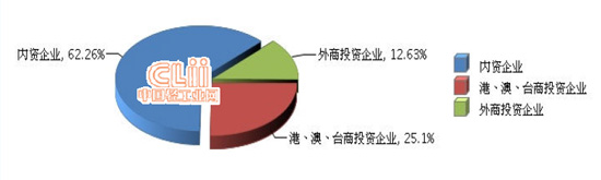 從企業(yè)注冊類型看,內(nèi)資企業(yè)主營業(yè)務(wù)收入占比大增速快。內(nèi)資企業(yè)完成累計主營業(yè)務(wù)收入占62.26%,同比增長10.91%;港、澳、臺商投資企業(yè)完成累計主營業(yè)務(wù)收入占25.1%,同比增長-2.67%;外商投資企業(yè)完成累計主營業(yè)務(wù)收入占12.63%,同比增長1.99%。(參見圖3、圖4)