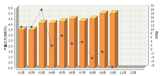 [摘要]根據國家統計局公布數據,全國鋰離子電池行業(yè)累計完成產量43.56億只(自然只),同比增長4.56%。其中:10月份完成產量5.05億只(自然只),同比增長-7.48%。