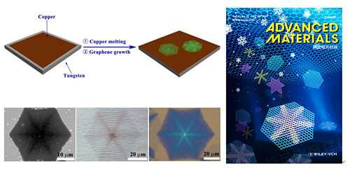 圖2 大面積自組裝的單晶石墨烯陣列(左)和《先進功能材料》封面(右)