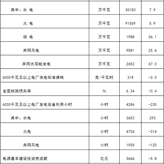 2014年,全國電源新增生產能力(正式投產)10350萬千瓦,其中,水電2185萬千瓦,火電4729萬千瓦。