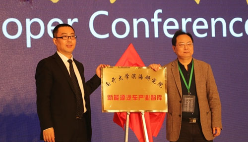 最后,南開大學(xué)濱海開發(fā)研究院與第一電動網(wǎng)聯(lián)合倡議成立的新能源汽車產(chǎn)業(yè)智庫舉行了成立儀式。南開大學(xué)濱海開發(fā)研究院的劉剛教授表示,成立新能源汽車產(chǎn)業(yè)智庫,是希望通過產(chǎn)學(xué)研結(jié)合的方式,為自主創(chuàng)新和創(chuàng)新國家建設(shè)提供自主支持,也是響應(yīng)國家的號召。劉剛教授和第一電動網(wǎng)CEO龐義成共同上臺揭牌。