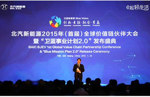 1月25日,北汽新能源2015年(首屆)全球價值鏈大會暨“衛藍事業計劃2.0”發布盛典主題大會在北京?國安第一城舉行。本次大會以“創新、互聯、融合、共贏”為主題,與來自全球的千名合作伙伴一起回顧新變化、展望新趨勢、謀劃新發展。本次大會北汽新能源正式發布了“衛藍事業計劃2.0”和充電業務戰略,成為與會嘉賓關注的焦點。