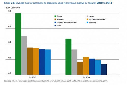 事實(shí)上,根據(jù)國(guó)際可再生能源署IRENA剛剛發(fā)布的2014可再生能源發(fā)電成本報(bào)告透露,世界上許多國(guó)家和地區(qū)的可再生能源發(fā)電成本已經(jīng)達(dá)到平價(jià)水平,甚至低于化石燃料的發(fā)電成本。
